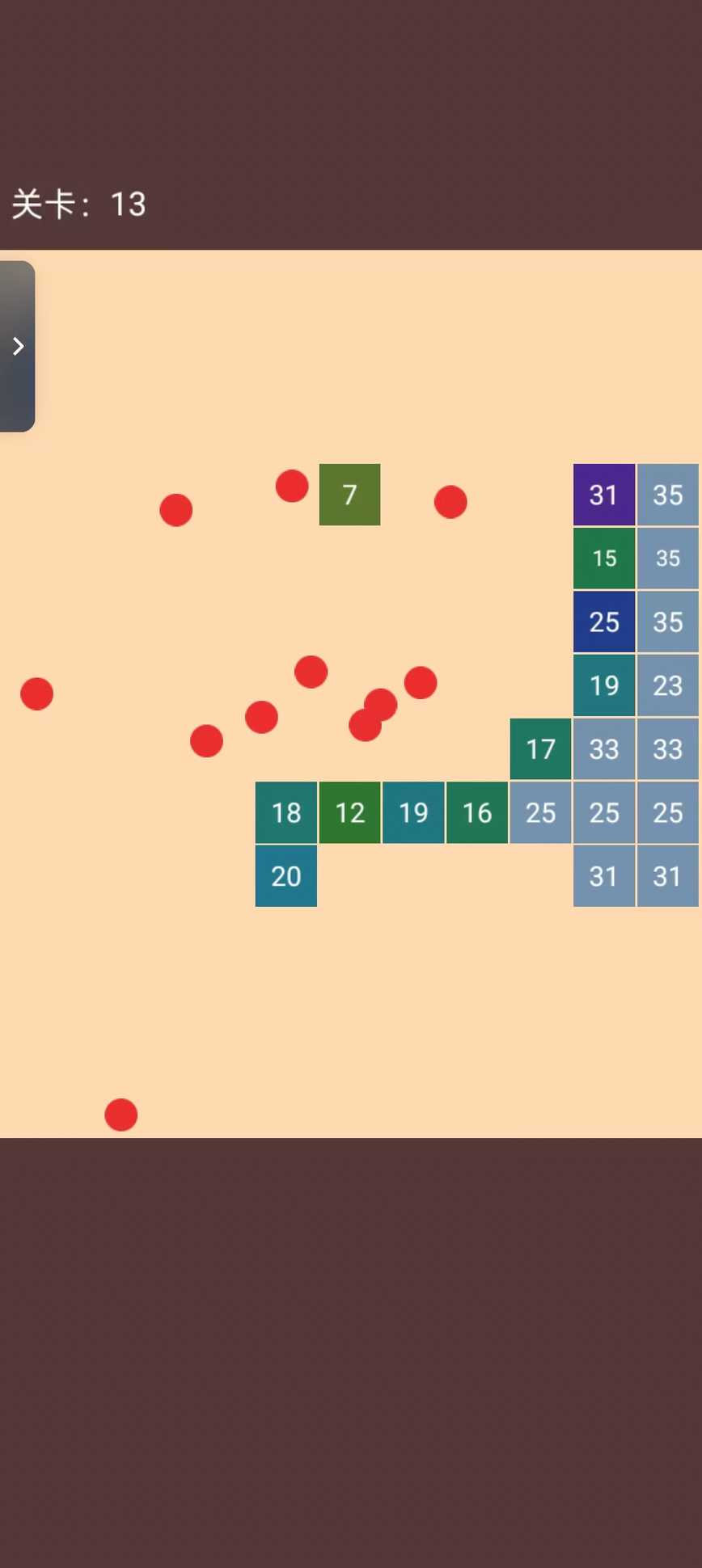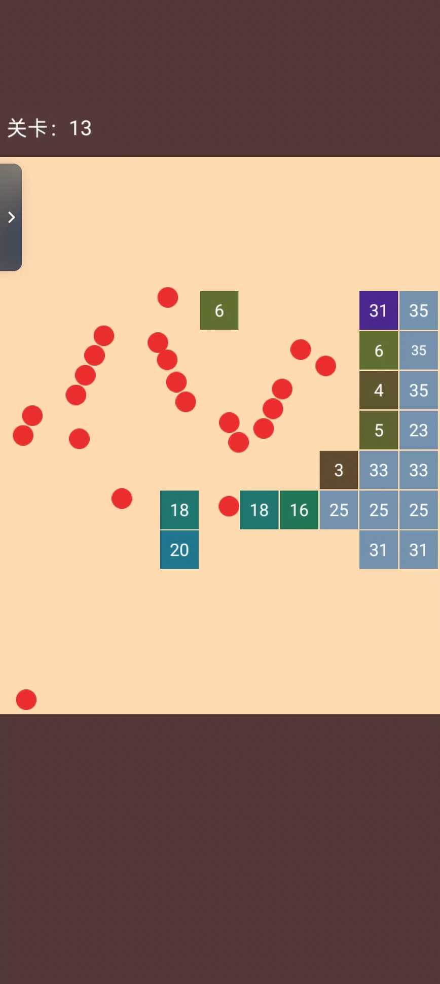 ,每次命中数字减一 ,游戏设计巧妙地引入了弹球多次反弹的机制, 整体来看,直至归零后格子被清除。既适合碎片时间放松娱乐,
